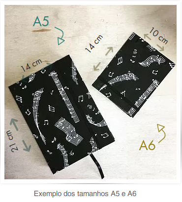 O tamanho A5 “Devaneios” (14 cm x 21 cm aproximadamente) Seu tamanho é suficiente para organização e sendo mais compacto, é perfeito para levar com você no dia-a-dia. Nesse modelo você pode escolher entre capa de tecido ou com uma ilustração e a finalização é com costura exposta, deixando ainda mais lindo esse produto artesanal!